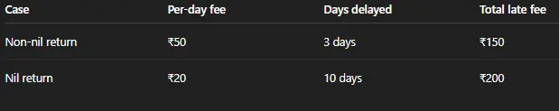 - Non-nil return: ₹50 per day (₹25 CGST + ₹25 SGST)